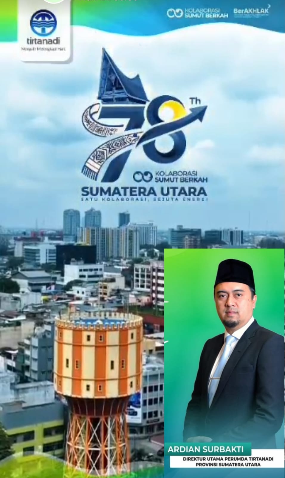 “Atas nama jajaran Direksi, Dewan Pengawas, dan seluruh pegawai Perumda Tirtanadi, kami mengucapkan selamat Hari Jadi ke-78 Provinsi Sumatera Utara. Semoga Sumatera Utara semakin maju, berdaya saing, dan berkelanjutan,” ujarnya.