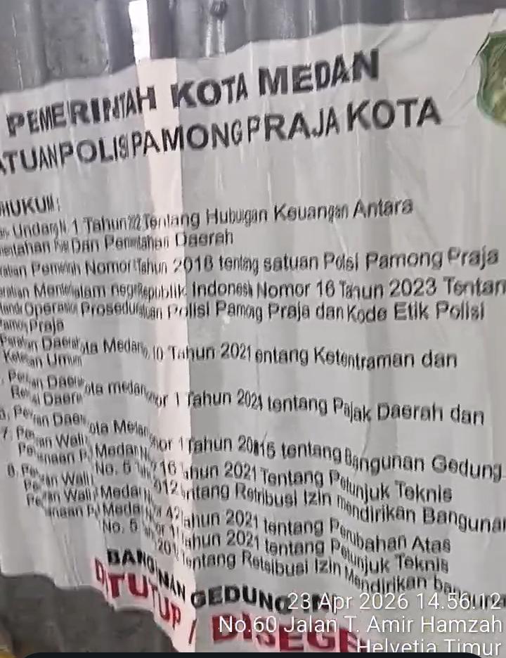 Medan || Faktasumatera — Penyegelan sebuah bangunan tanpa izin oleh Satuan Polisi Pamong Praja (Satpol PP) Kota Medan di jalan T amir hamzah tampaknya tak cukup ampuh menghentikan aktivitas pembangunan kamis 23/04.